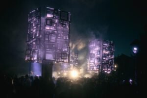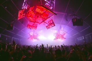 5 Xplodes hanging in the Betonkruid Area on the Into the Woods ADE 2025