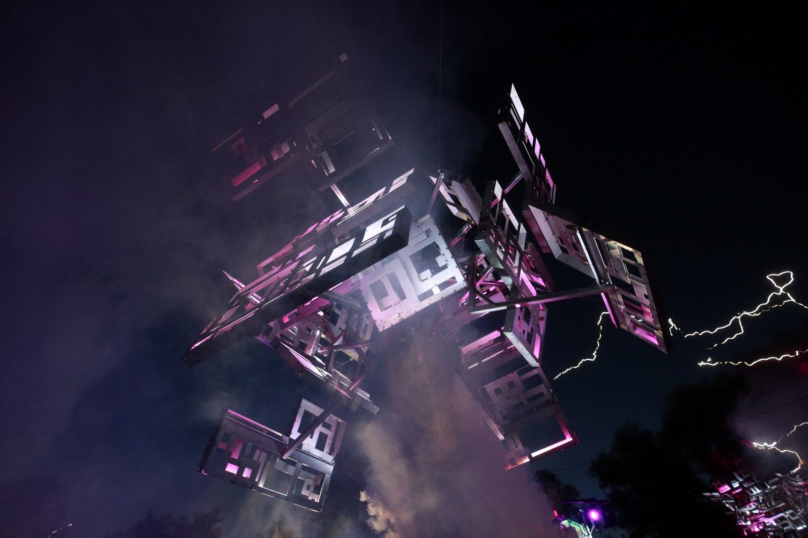 We journeyed into the desert once again to make some Strebel. We lasered, welded for weeks, drilled a thousend wholes, contecte kilometers of ledstrips, bolted everything together and Xplode was borne. It had it’s first flight on the Tanzwüste. Together with our friends from Südpol we found ourselves in the middle of an AI brain, or…. where were we exactly? nobody knows. Who remembers wasn’t there……